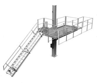 Other features include: machine screw actuation, push-button operation, and a self-adjusting stairway. The G-Raff Elevating Platform can be easily customized to suit your specific needs.